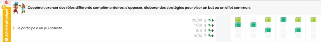 Modifier la date d’une réussite ne crée pas de copie. Par exemple, si vous avez évalué une réussite le 15 septembre, et que vous modifiez sa date en 15 octobre, vous aurez la réussite en octobre, mais plus en septembre. Pour créer des copies d’une réussites à des dates différentes, voir le point suivant.