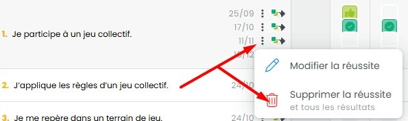 5. Supprimer une réussite