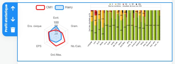 Les cases Radar, Histogramme et Niveau de classe offrent la possibilité de gérer finement l’affichage statistique.