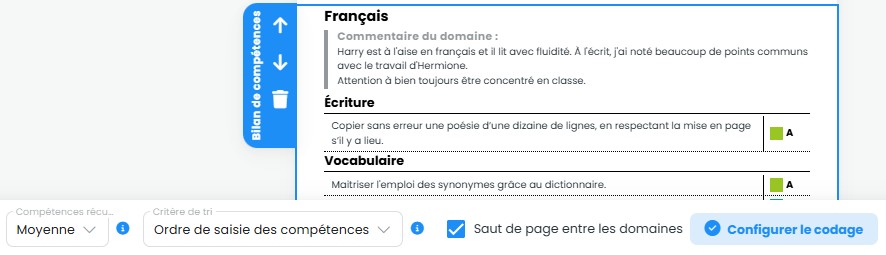 2. Choisissez l’ordre dans lequel les compétences seront triées dans le livret. Par défaut, c’est par date.