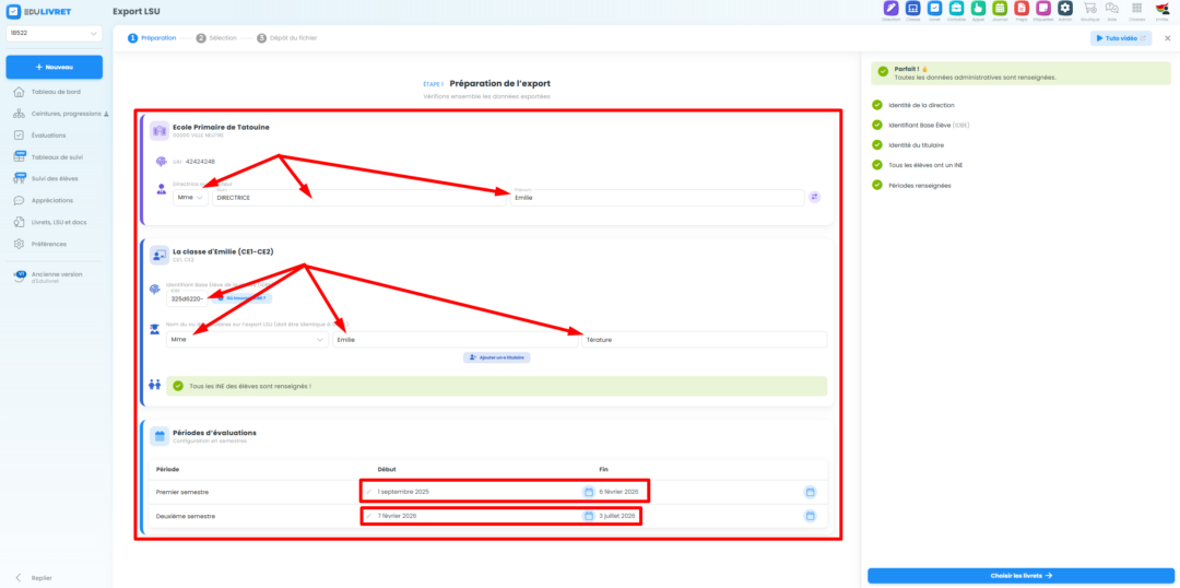 Remarque : Les informations manquantes peuvent être renseignées directement sur cette page. Vous pouvez par exemple ajouter un INE d’élève manquant, ou modifier des dates de périodes en cliquant dessus.