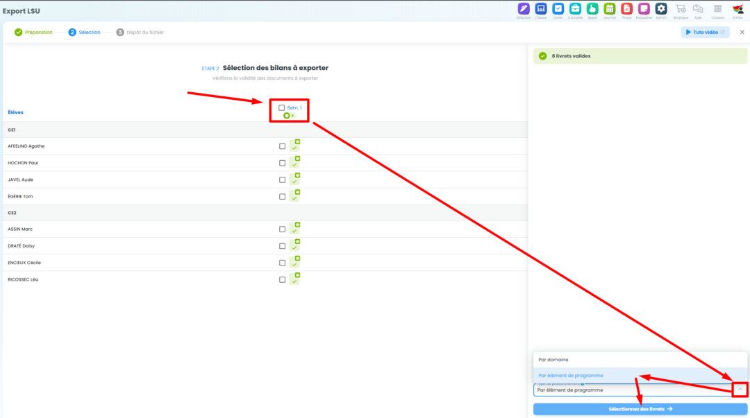 Vous n’avez plus qu’à sélectionner les livrets à exporter ainsi que le type de positionnement.