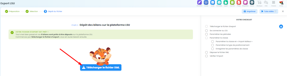 Maintenant que vous disposez du fichier XML, il faudra le déposer sur la plateforme académique de laquelle vous dépendez. Un pas-à-pas sous forme de todo-list vous guide dans chacune des étapes.