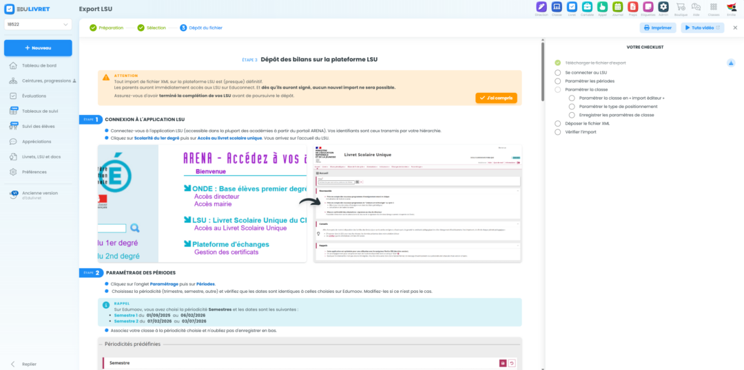 Si vous voulez réaliser un export avec positionnement par éléments de programme, pensez à générer vos LSU sur Edulivret avec ce positionnement par éléments de programme. Sans cela, vous risquez d’avoir une erreur de positionnement lors du dépôt du LSU sur la plateforme académique.
